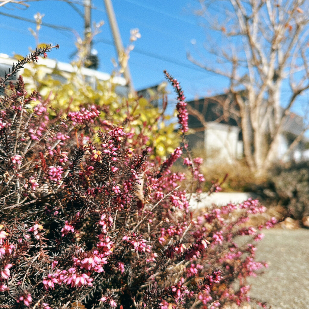 niwa to ki のお庭では、エリカ・ダーレンシス が花を咲かせ小さな春の訪れを感じさせてくれています。
