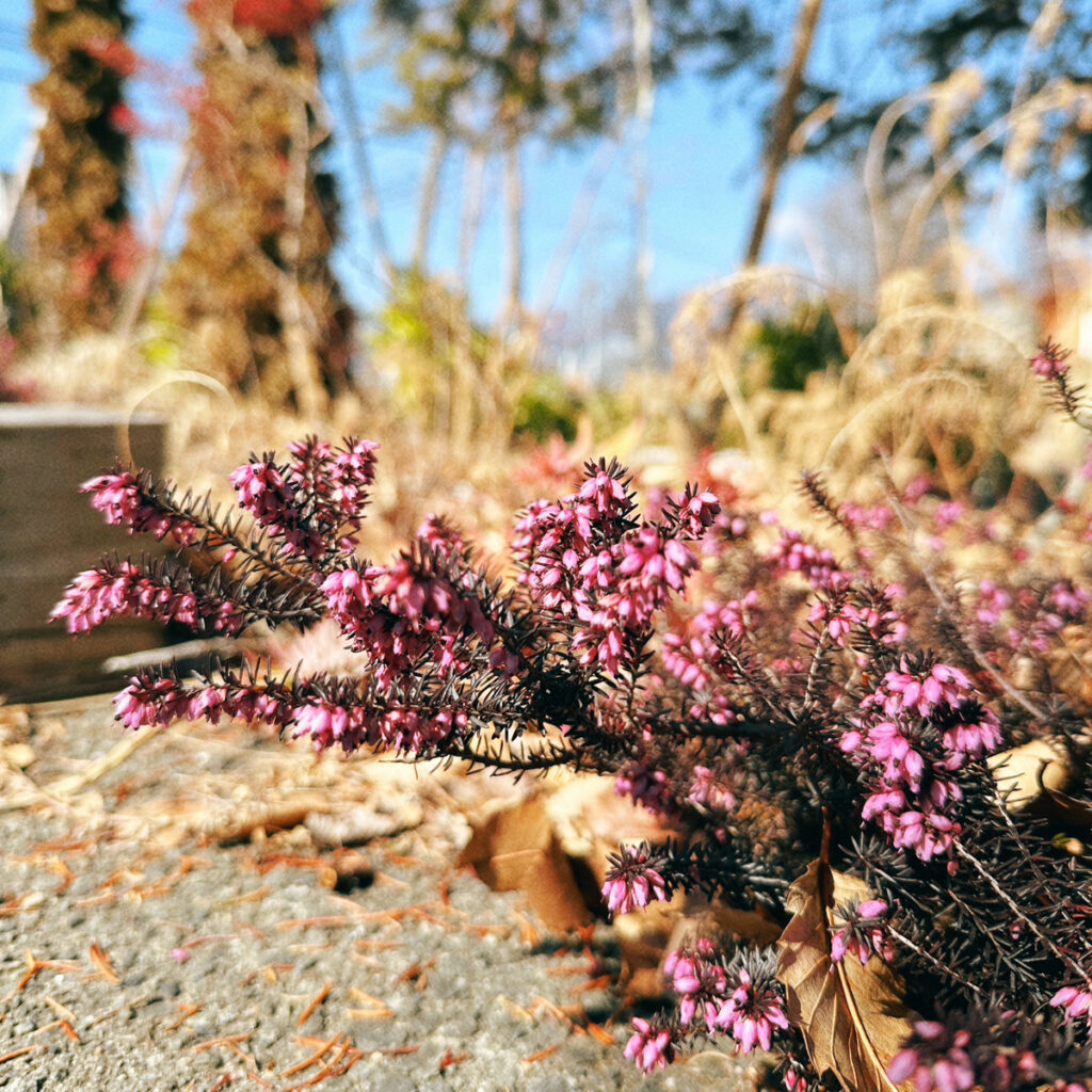 niwa to ki のお庭では、エリカ・ダーレンシス が花を咲かせ小さな春の訪れを感じさせてくれています。